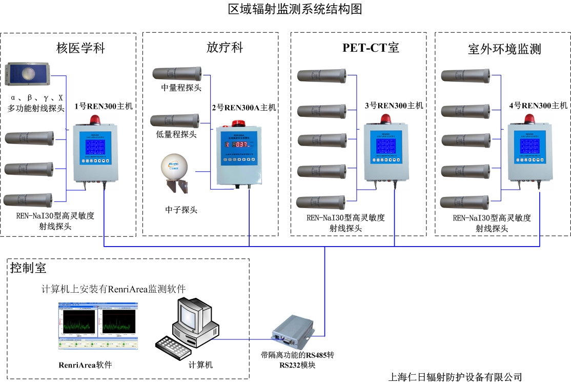 在线式xγ射线监测报警系统通过计算机远程集中监测,完成对放射性场所的xγ射线放射性剂量的实时监测、超域值后就地测量探头和控制室同时给出声光报警,提醒工作人员注意辐射防护,以达到保护工作人员安全和提高辐射事故应急处理速度的目的。